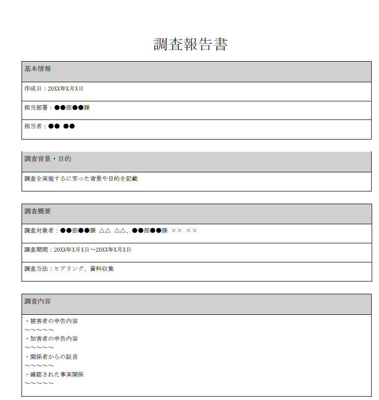 - ハラスメント調査報告書の作成
